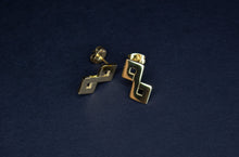 Clip-on version features a dangle version of the same stud earring design, with a gold plated brass ear clip.